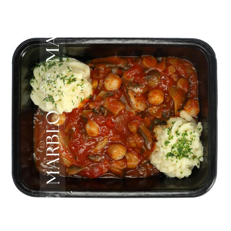 Rundstong met gehaktballetjes en puree