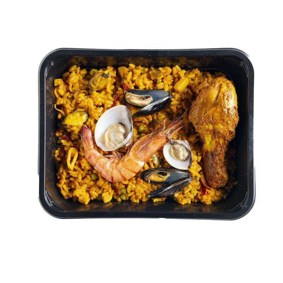 Paella met kip en zeevruchten