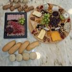 (Tapasplank met oa: fijne kazen en charcuterie, verschillende dips met dipkoekjes, mozzarellaspiesjes, wraps met zalm, gehaktbal, vers fruit, ... )